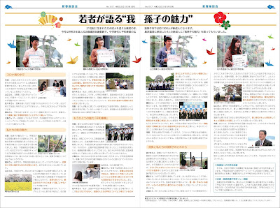 今年令和3年(2021年)は、21世紀になって生まれた若い人たちが成人を迎える最初の年となります。『広報あびこ』の1月1日号(第4、5面)で、令和3年成人式企画運営会議委員で、中学時代に我孫子市平和事業広島派遣団に参加した派遣中学生OB・OG4人の新成人が、「我孫子の魅力」について、星野我孫子市長と対談しています。我孫子市平和事業についても、語られていますので、ご紹介します。